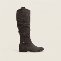 Women’s knee-high boots designed with a pull-on structure and low heel. The boots are intended for general daily use.
