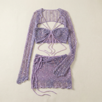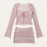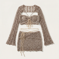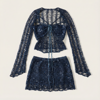 This women’s two-piece set includes a long sleeve top and a matching skirt, designed to be worn together for coordinated everyday or casual styling.