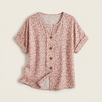 This women’s floral top features a button-up front and short sleeves, suitable for everyday or casual wear.