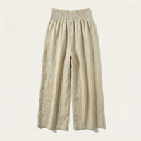 Women’s wide-leg pants designed for casual wear. These pants feature a simple pull-on style.